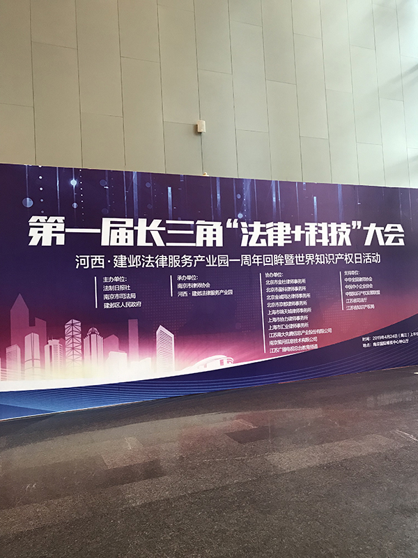 424日,律聯科技受邀參加由法制日報社、南京市司法局、南京市建鄴區人民政府聯合主辦,南京市律師協會和河西?建鄴法律服務產業園共同承辦的第一屆長三角“法律+科技”大會,本次大會在南京隆重召開。