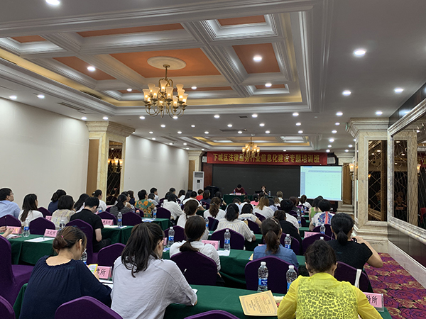 2019年8月15日,浙江律聯(lián)信息科技有限公司受杭州市下城區(qū)司法局邀請,參與由下城區(qū)司法局主辦的:下城區(qū)法律服務行業(yè)信息化建設專題培訓班。本次參與培訓班的律所共計60多家,共同學習律所信息化建設,律聯(lián)科技客服部經(jīng)理陳麗珍出席了本次培訓班活動并擔任培訓導師。