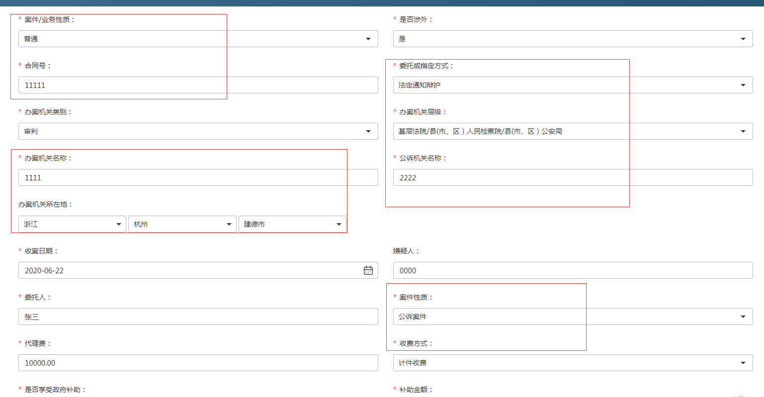 2、平臺對接后根據(jù)要求律師事務(wù)所在立案表中新增選項,在創(chuàng)建立案時填寫上報新數(shù)據(jù)。