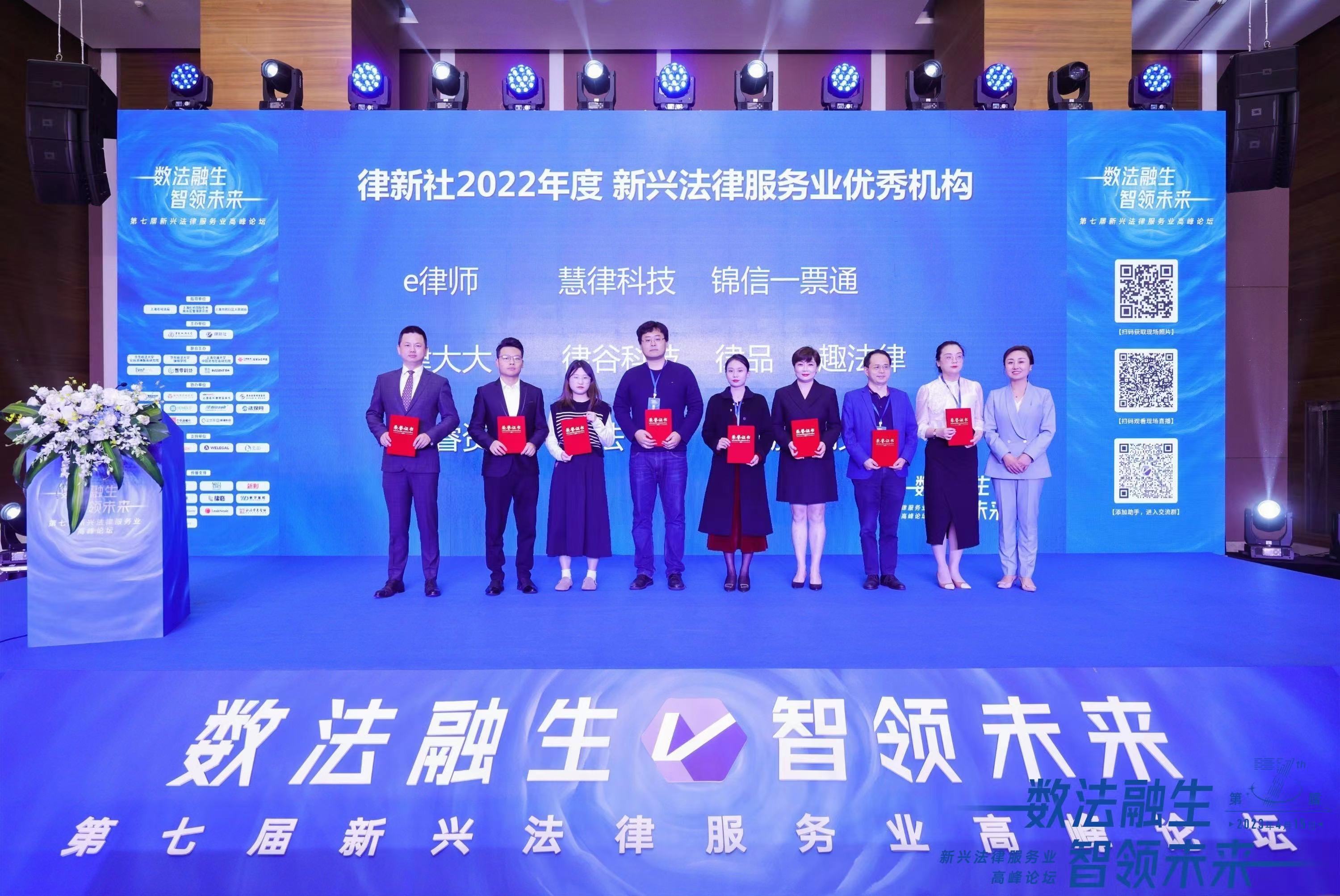 律聯科技(e律師)作為法律服務行業的優秀企業之一,憑借自身核心團隊在法律服務中不斷創新、不斷發展、不斷耕耘。斬獲“新興法律服務業優秀機構”大獎,律聯科技技術總監代表e律師上臺接受這一殊榮。