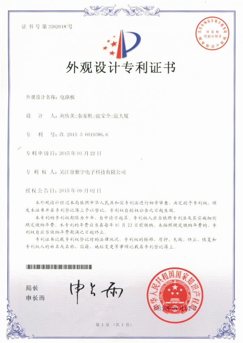 電路板專利證書